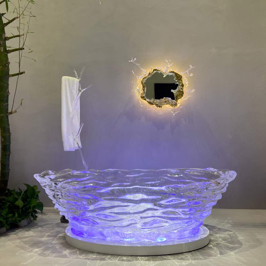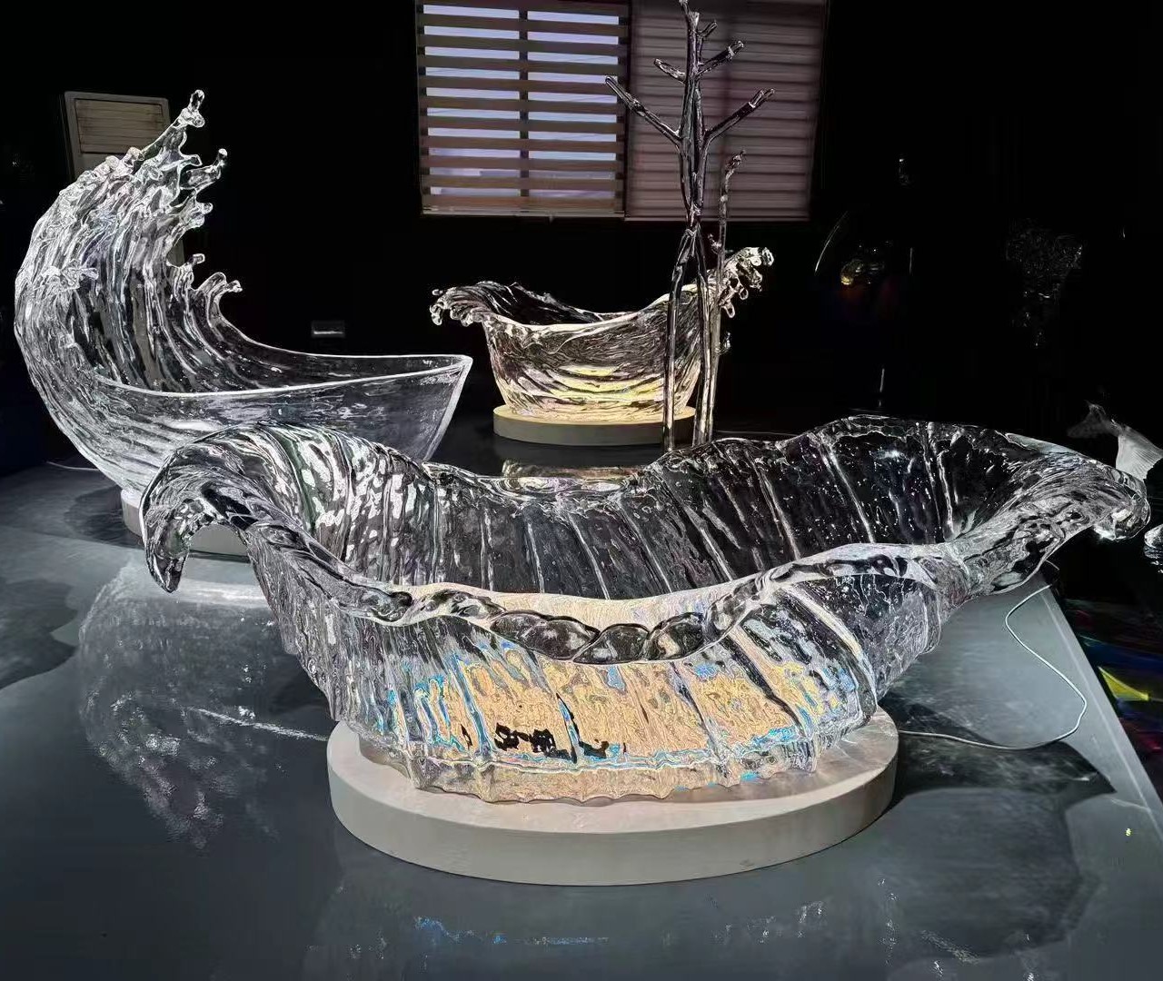 This is a crystal bathtub sculpture—crafted with wave-textured lucency crystal, blending art with functionality.
